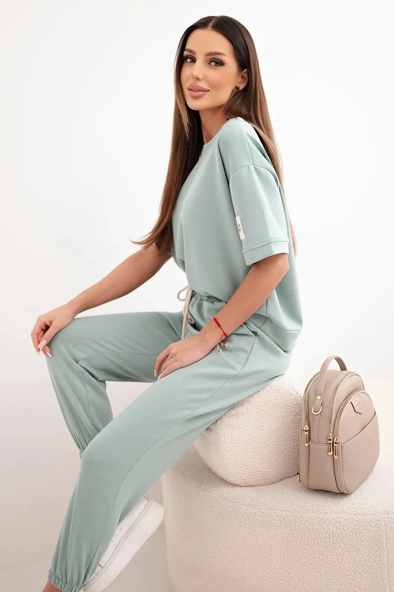 - Střih: volné tričko s krátkým rukávem + dlouhé kalhoty s gumou