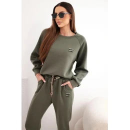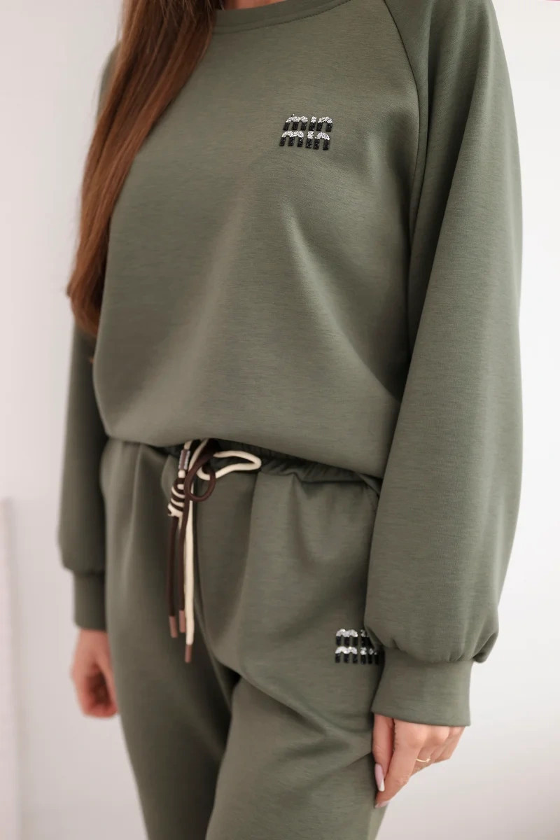 Dámská souprava z viskózy s mikinou a kalhotami khaki masełkowy