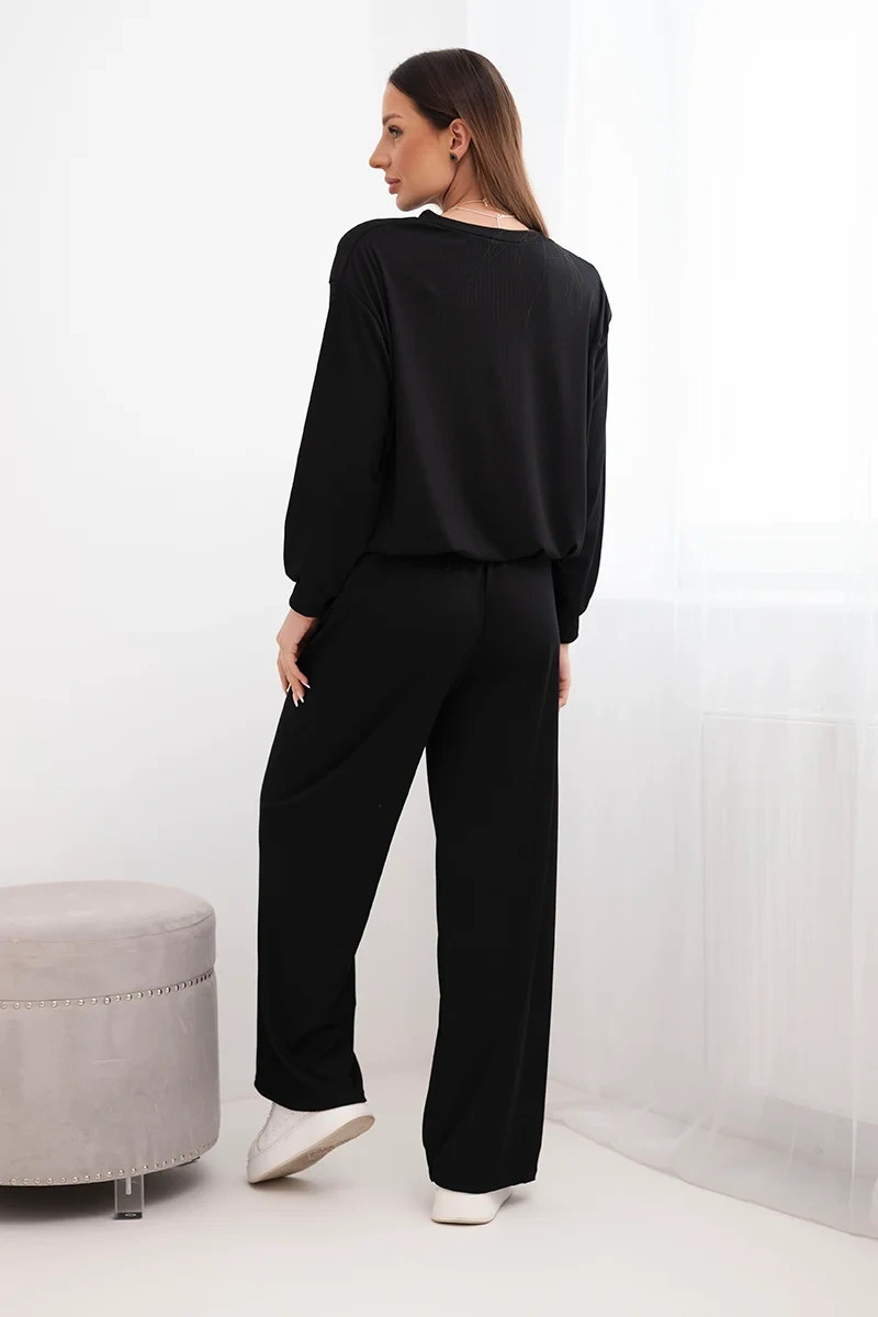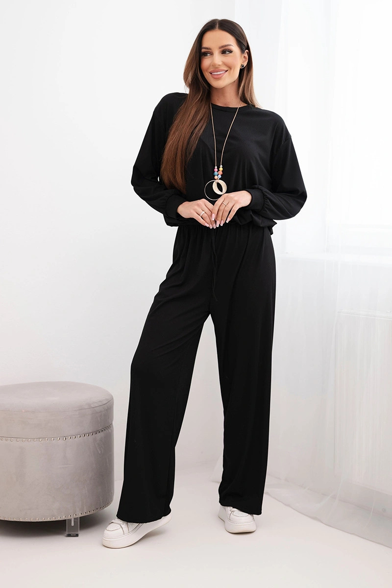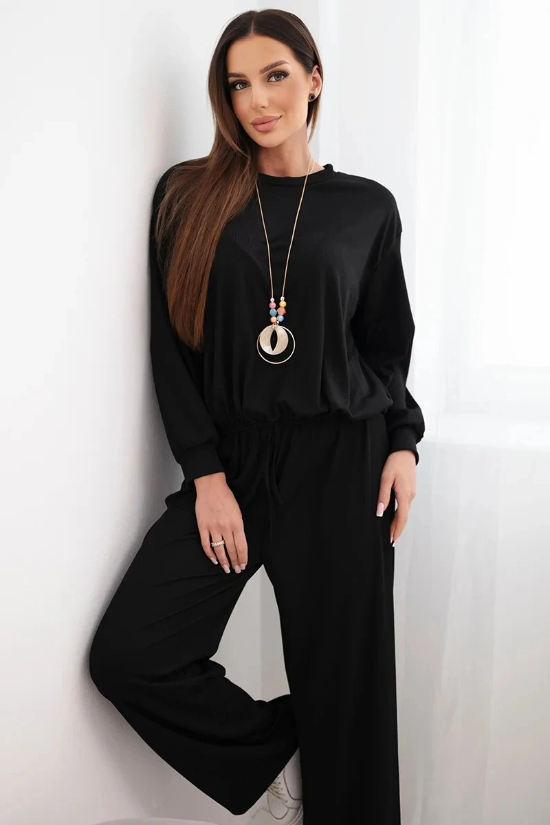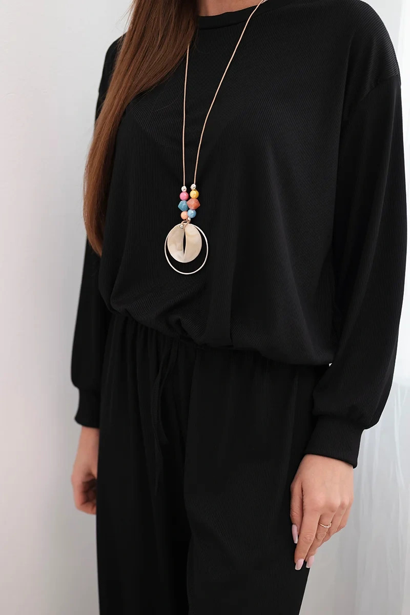 Dámská souprava z viskózy s řetízkem a široké kalhoty černý