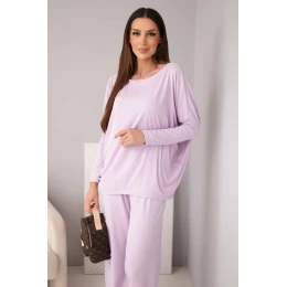Dámská souprava z viskózy s volnou blůzou a kalhotami světle fialová
