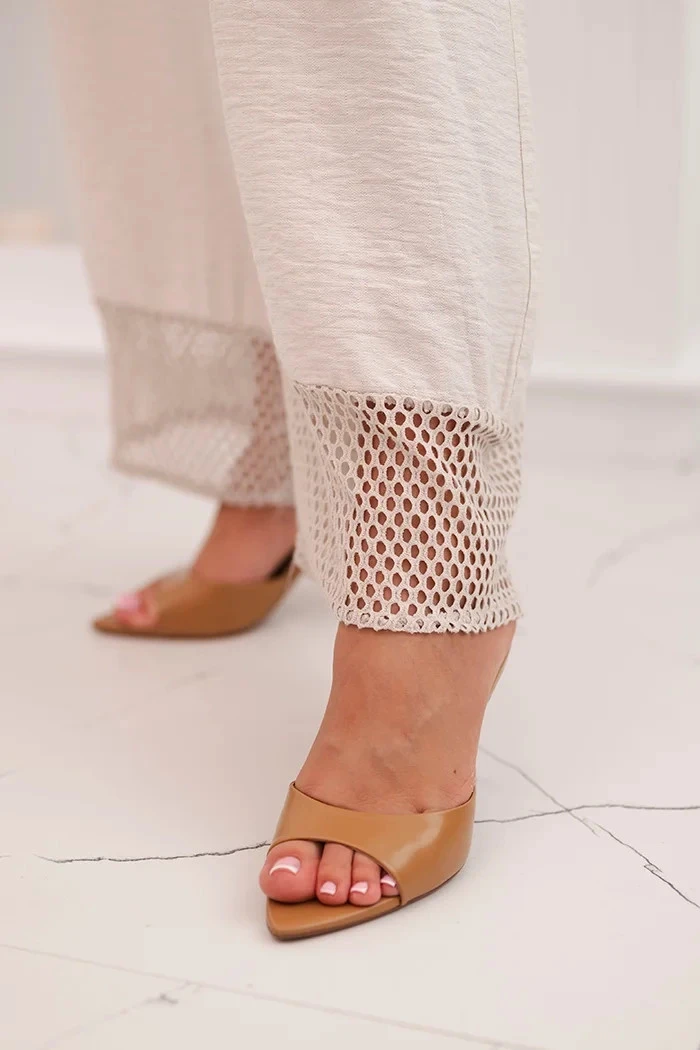 Dámská souprava z viskózy, top na širokých ramínkách a kalhoty s širokým nohavicí béžový