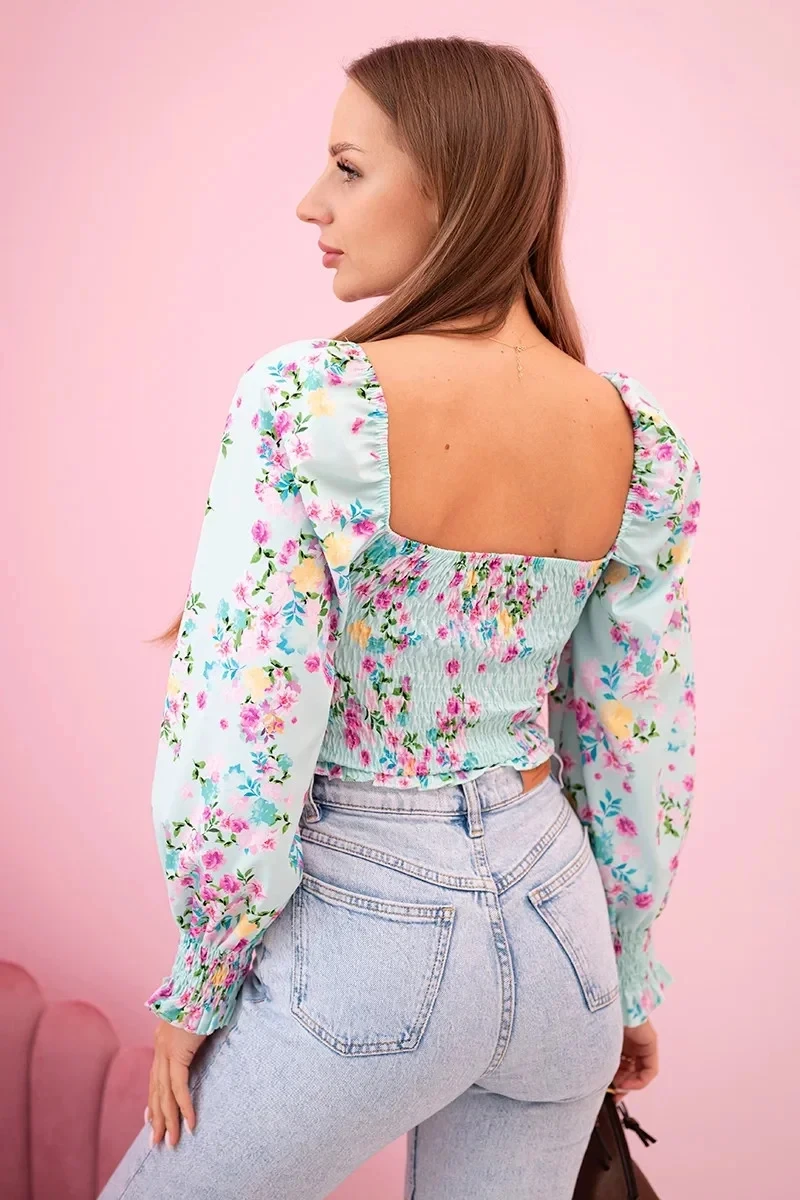 Dámská španělská halenka s květinovým vzorem, dlouhý rukáv mincovna