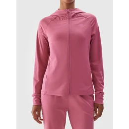 Hlavním cílem oblečení ze sportovní řady je poskytnout pohodlí a podporu při jakémkoli typu tréninku různé úrovně a intenzity. Díky pohodlnému střihu, rychleschnoucím, elastickým materiálům nebo lehkým konstrukcím poskytuje sportovní oblečení plnou volnost pohybu a umožňuje maximální soustředění a pohodlí během cvičení. Má přizpůsobený střih slim, který přiléhá k tělu. Vazba single jersey s hladkým povrchem na jedné straně je elastická a pohodlná při nošení. Dámská sportovní mikina s kapucí 4F do posilovny má střední gramáž 250 gsm, díky čemuž je měkká a prodyšnější.