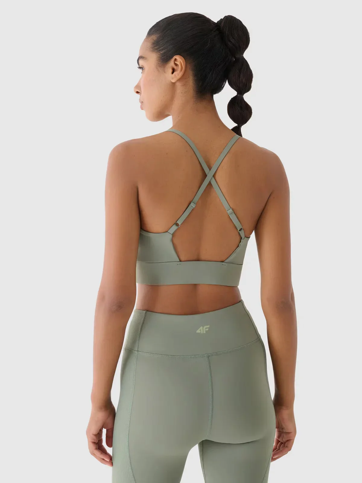 Hlavním cílem oblečení ze sportovní řady je poskytnout pohodlí a podporu při jakémkoli typu tréninku různé úrovně a intenzity. Díky rychleschnoucím, elastickým materiálům a pohodlnému střihu podprsenka zajistí plnou volnost pohybu a umožní maximální soustředění a pohodlí během cvičení. Má přizpůsobený střih slim, který přiléhá k tělu, a nízkou podporu, která se hodí pro méně intenzivní cvičení, jako je jóga, pilates nebo každodenní aktivity.