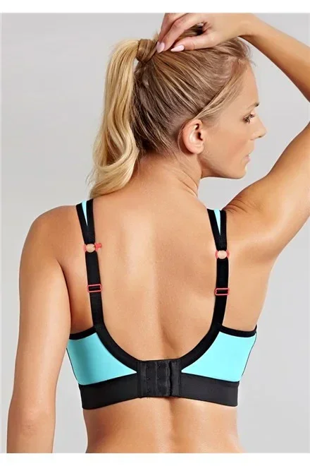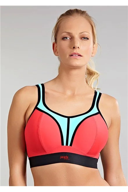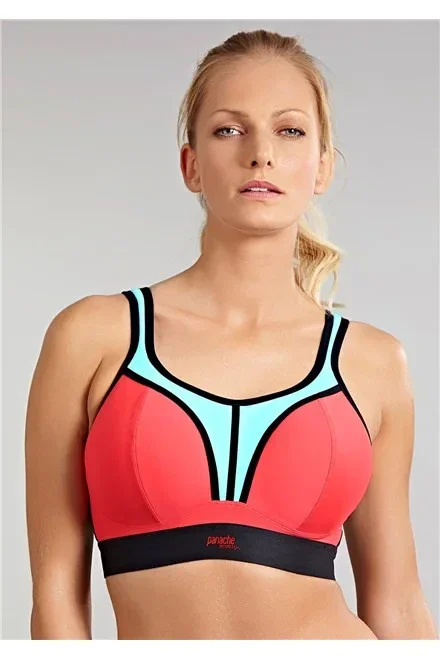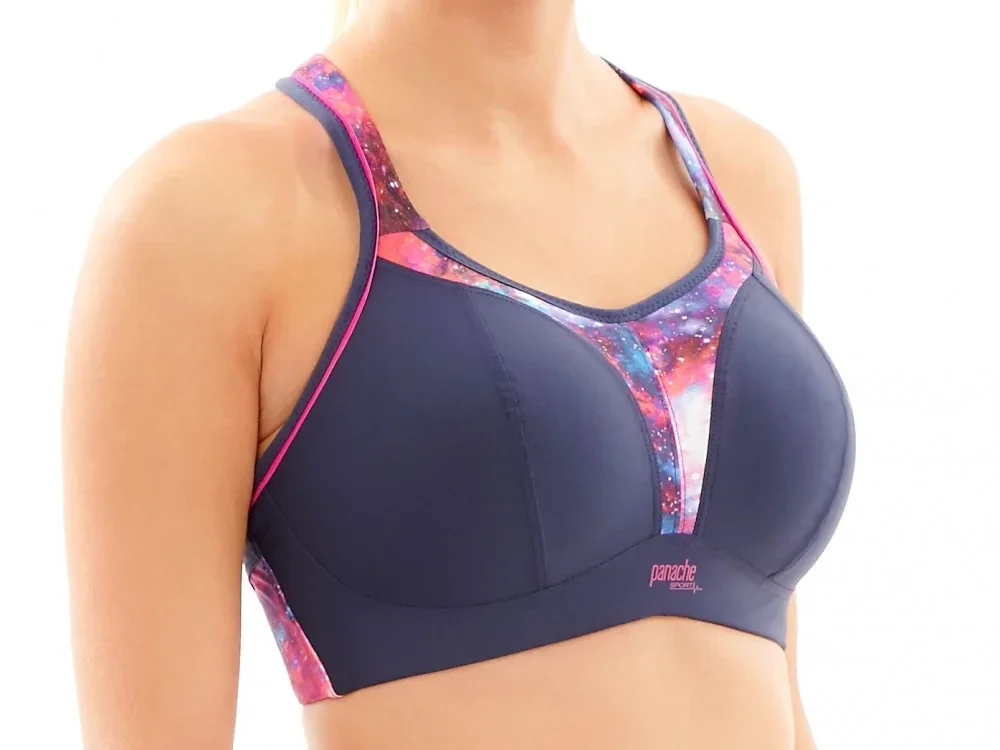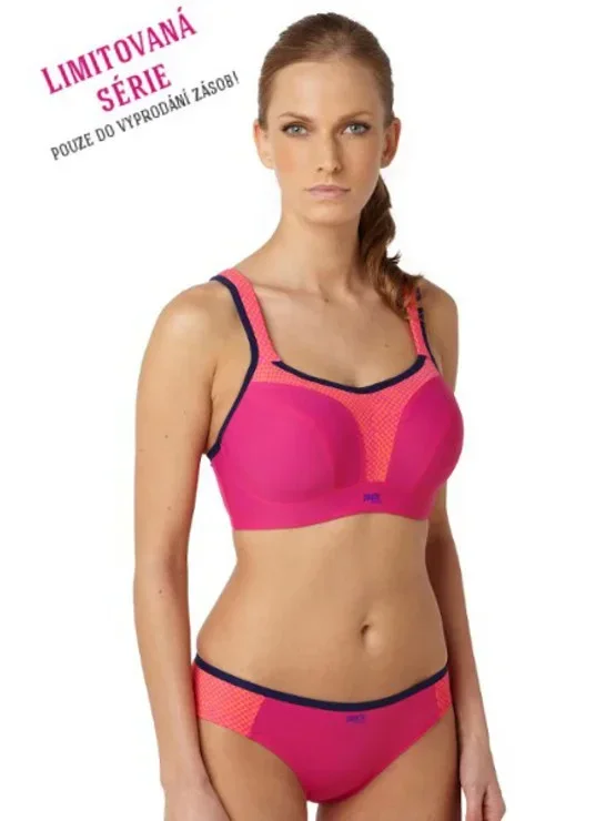 Dámská BEZKOSTICOVÁ sportovní podprsenka PANACHE 7341, která vychází z oblíbeného střihu podprsenky Panache 5021.Vývoj této podprsenky trval celé tři roky, je právem pokládána za nejlepší sportovní podprsenku na světě, jelikož dokáže minimalizovat pohyb prsou při sportování úctyhodných 83%. Je vhodná taktéž pro plnější poprsí. S touto podprsenkou můžete směle sportovat a prsa zůstanou na svém místě .V roce 2012 a 2013 podprsenka opakovaně získala ocenění Nejlepší sportovní podprsenka na udílení cen UK Lingerie Awards. Vyrábí se až do velikosti Britského košíku "H" ( Evropského - "K" ), což je skvělá zpráva pro všechny prsaté sportovkyně. Vyztužené košíčky podprsenky s vysokým středem jsou v horní části zavřenějšího střihu. Podprsenka je technicky velmi dobře zpracovaná tak, aby dokázala pohltit velká prsa a následně je při jakékoliv sportovní aktivitě držet na svém místě. Podprsenka má rozšířené délkově nastavitelné ramínka, která se dají v zadní části sepnout k sobě do "boxerového" tvaru. Ramínka jsou široká vypodložená, pro snížení tlaku na ramena. Podprsenka má prodyšný materiál, který odvádí nadbytečnou vlhkost.