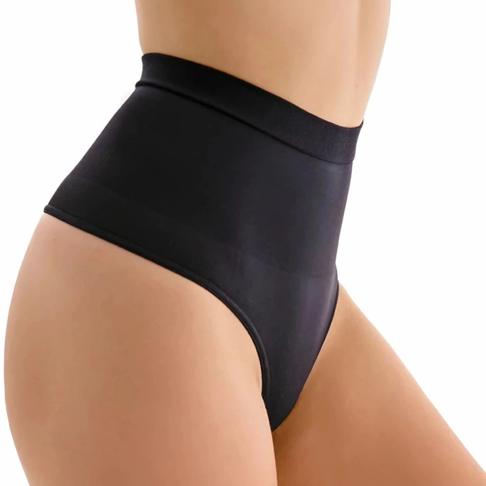 Dámská stahovací tanga 1212 Seamless black GABRIELLA - černá barva - z elastického materiálu - vysoký pas - bezešvá technologie - antibakteriální klínek