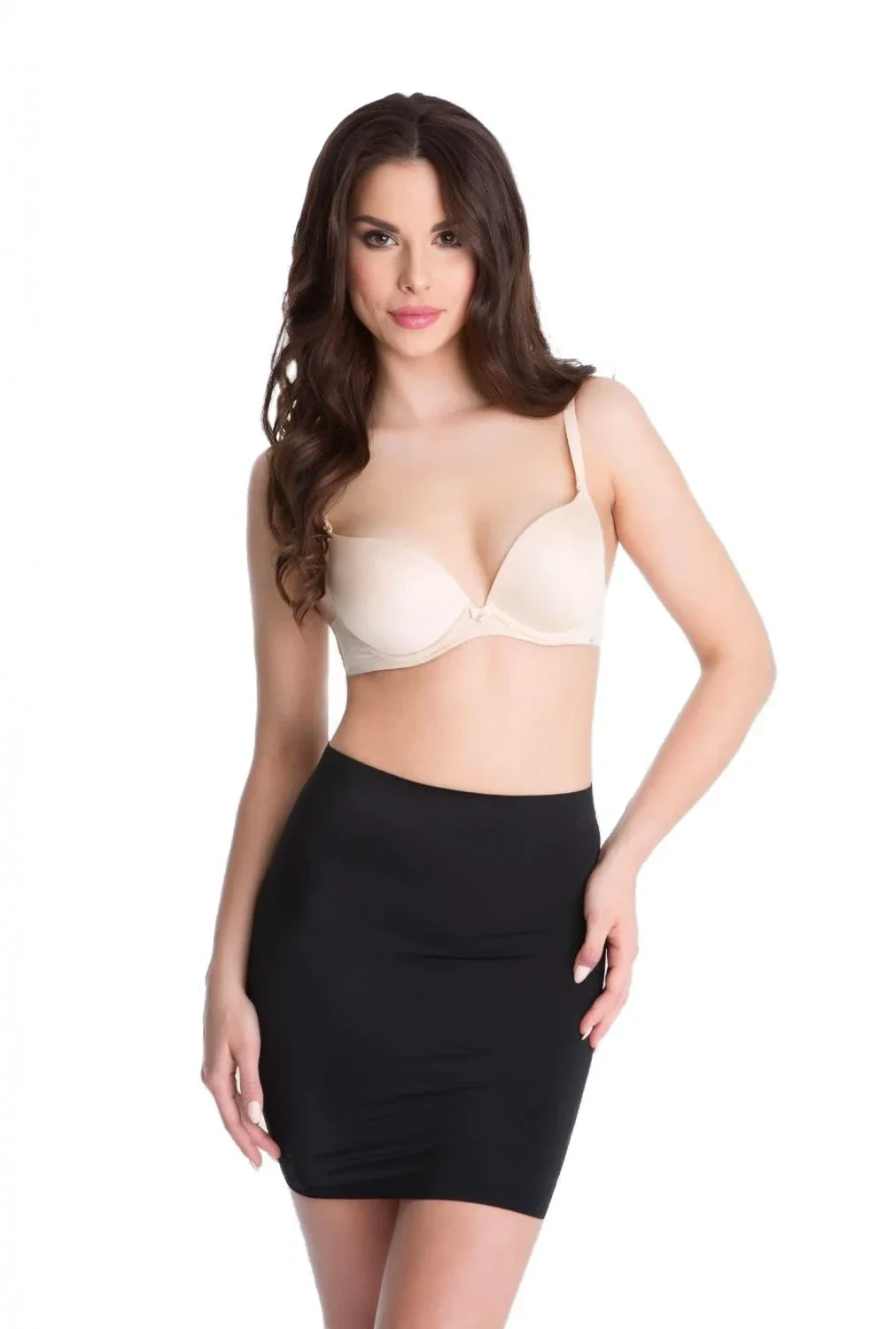 Dámská stahovací sukně značky Julimex. Tato stahovací sukně v tělové barvě je střižena tak, aby Vám pomohla zakrýt nedostatky a vytvarovala Vám dokonalou siluetu Vaší postavy a Vy se cítila sebejistě při každé příložetosti. Sukně krásně stahuje bříško, boky, zadeček a zmenšuje objem pasu, tím se dokonale hodí pod sukni nebo šatky. Vrchní obvod sukně je speciálně dvojitě zpevněn a je doplněn na vnitřní části silikonovými proužky, které Vám zaručí pevné držení na těle a správnou funkci stahovací sukně. Vrchní i spodní obvodové kraje sukně jsou zpevněny pevnou gumičkou, aby co nejdokonaleji obepínaly Vaše linie.