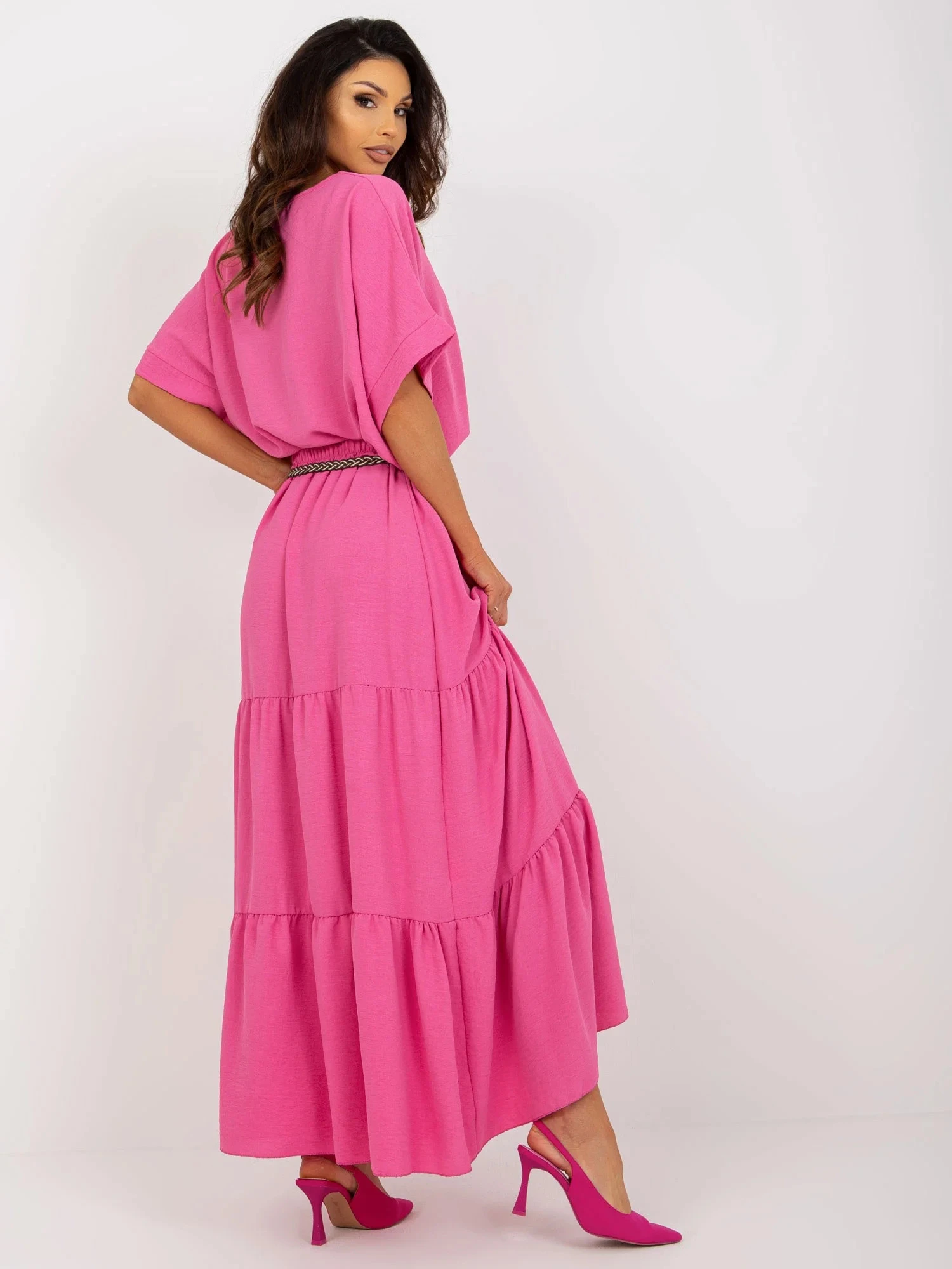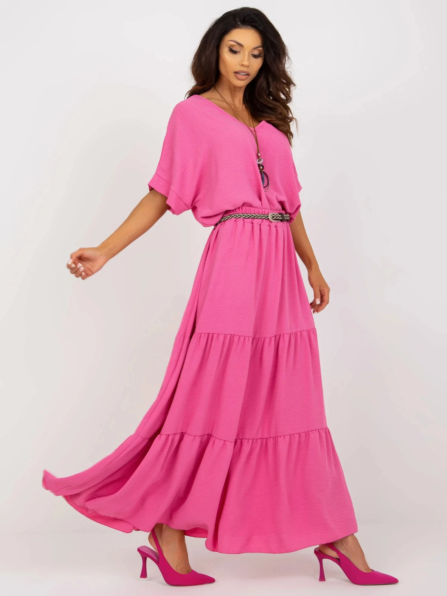 Sukně má v pase gumu a opasek. Model má délku maxi.