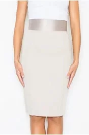 Dámská elegantní sukně M160 FIGL s vyšším pasem zdobená širokým saténovým páskem. Délka sukně je po kolena.