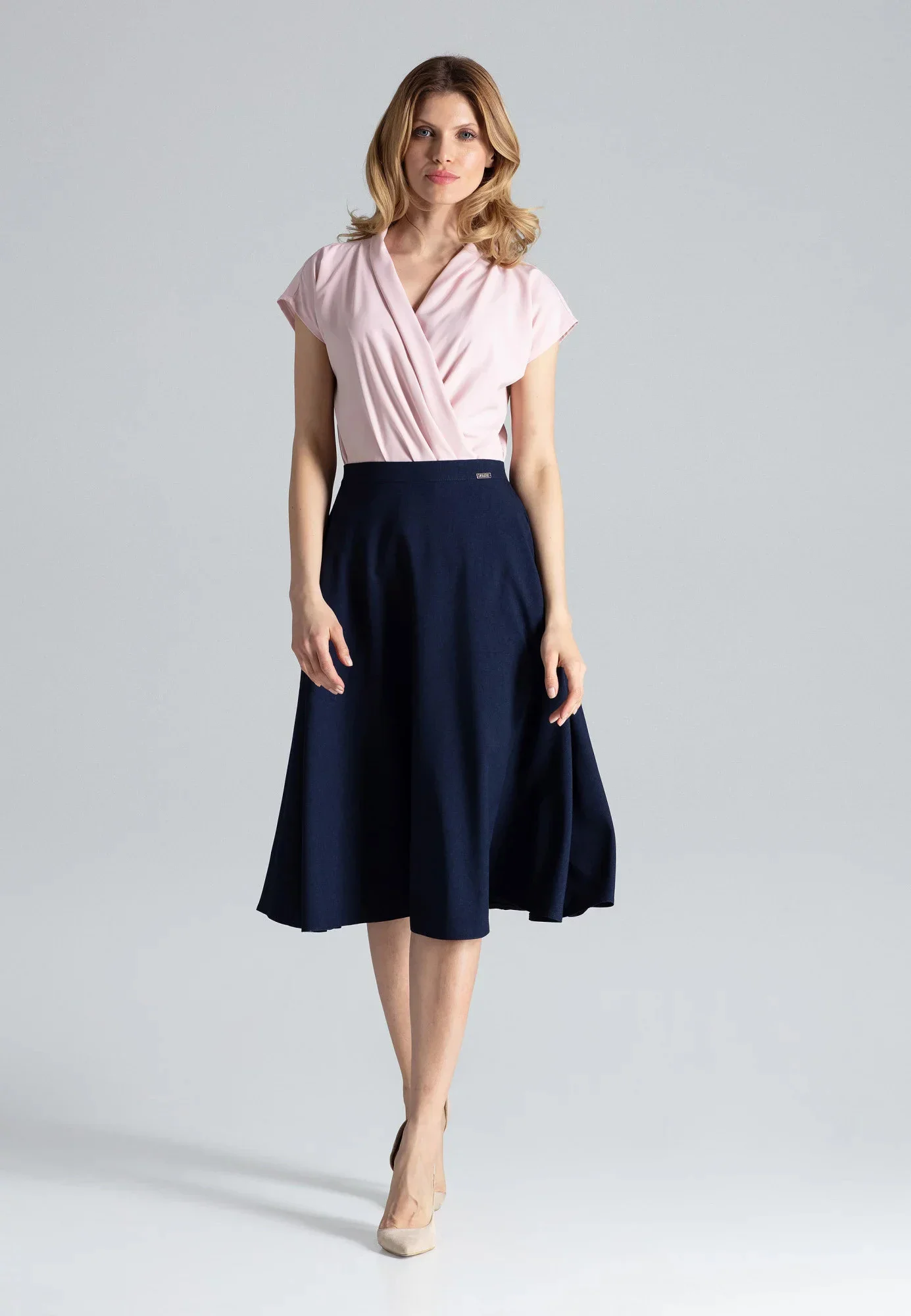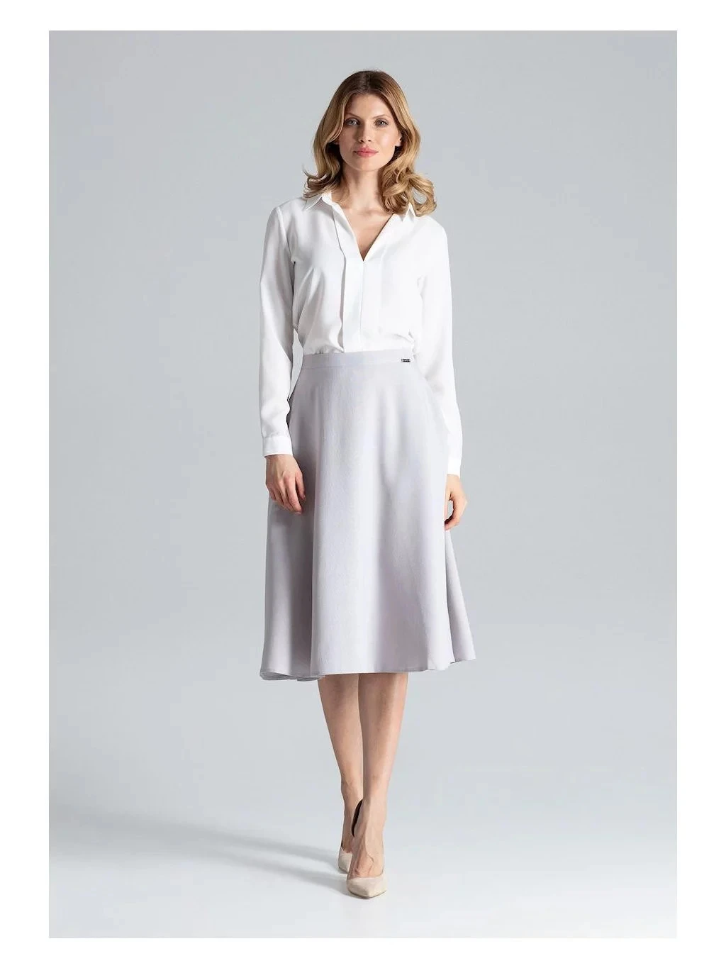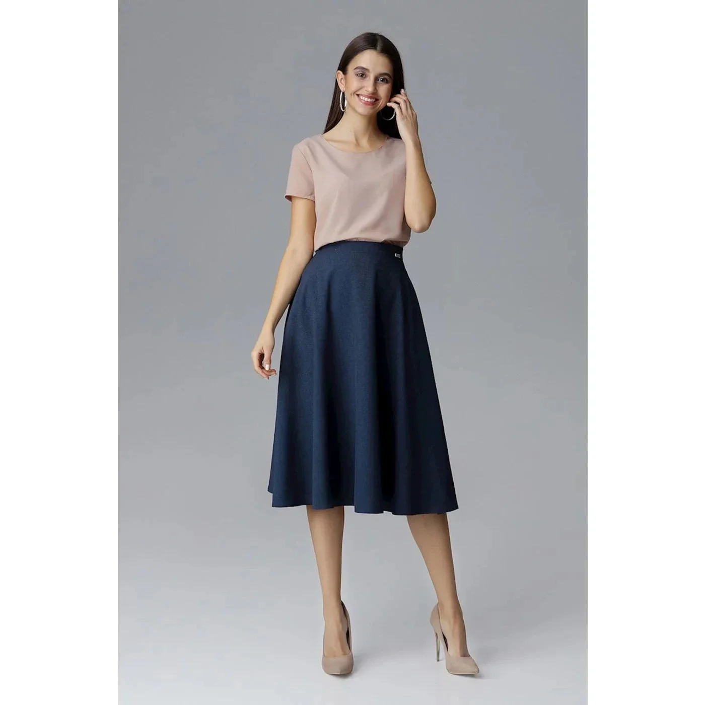 Produkt Dámská sukně model 17459120 - Figl prodáváme v těchto velikostech: M-38, L-40a barvách světle šedá, tmavě modrá5902194359306, 5902194359276
