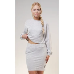 Dámská sukně Denisa. Světle šedá sukně má praktické kapsy a gumu v pase. Je ozdobena černou nášivkou s nápisem Lounge. Použitý materiál s vysokým obsahem bavlny je příjemný a poddajný na dotek. Sukně je pohodlná a využijete ji téměř při všech volnočasových aktivitách.