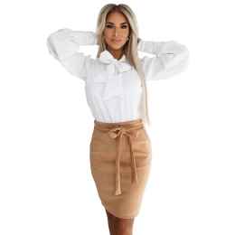 Dámská sukně 569-1 Numoco basic - světle hnědá barva - z příjemného semiše - praktické dvě kapsy - v pase zavazování na pásek - zapínání na zip vzadu