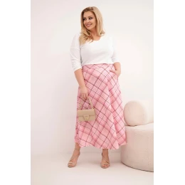 Dámská sukně Plus Size kostkovaná s širokým lemem světle růžová