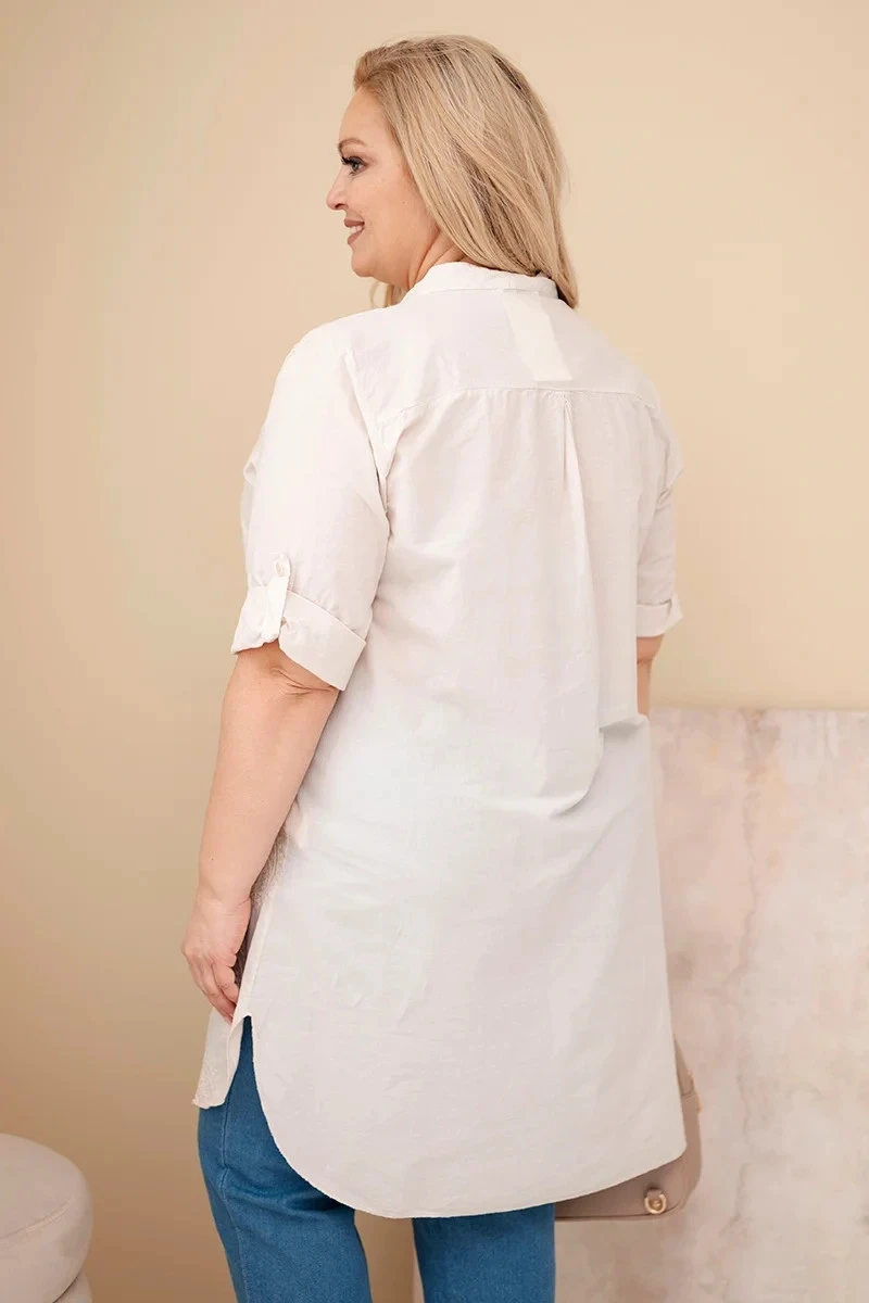 1. Dámská sukně Plus Size s model 21959154 a ohrnutým rukávem béžová - K-Fashion
