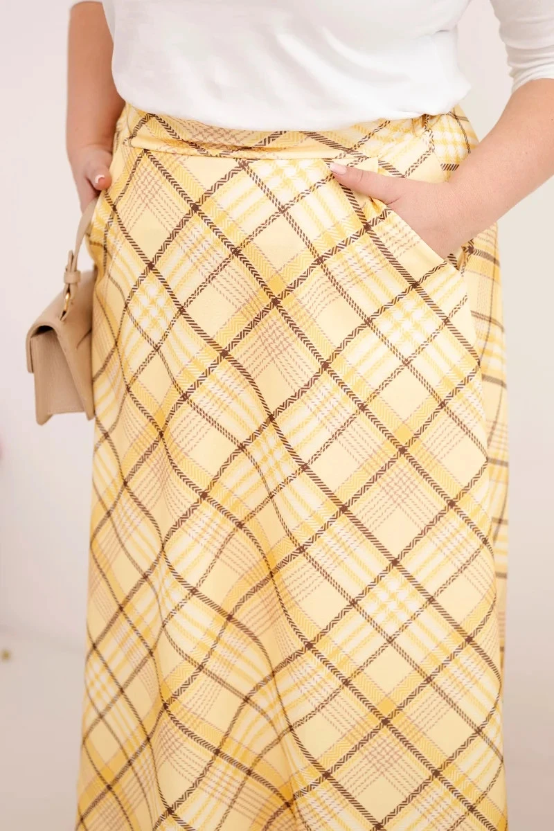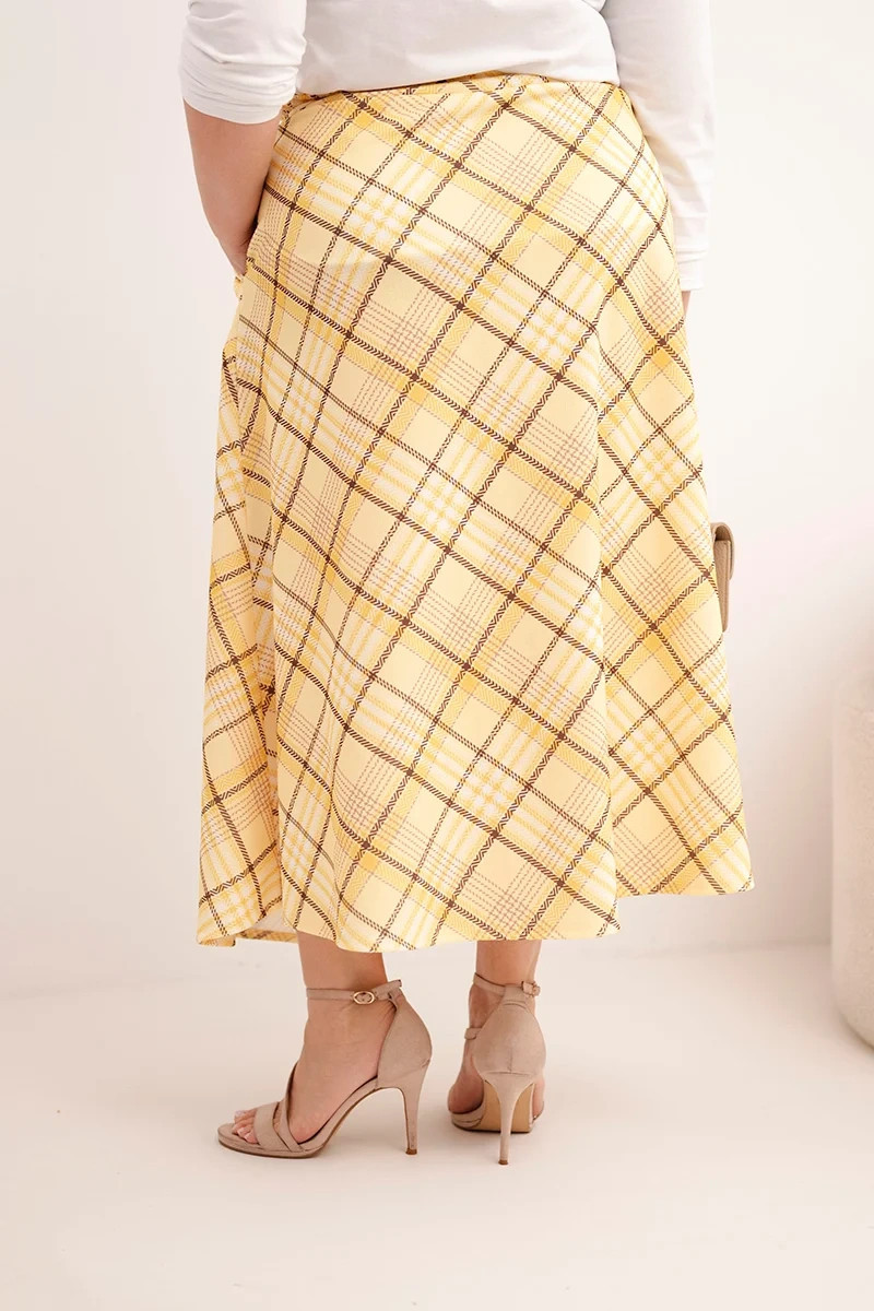 Dámská sukně Plus Size s širokým lemem v model 21959132 vzoru žlutá - K-Fashion