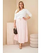 Sukně má elastickou gumu v pase a další zavazování, které umožňuje dokonalé přizpůsobení postavě. Zvonuovitý střih s jemným volánem na spodním okraji dodává celku subtilní, romantický charakter. Je to model, který se skvěle hodí jak do každodenních outfitů, tak na dovolené, procházky nebo setkání s přáteli.
