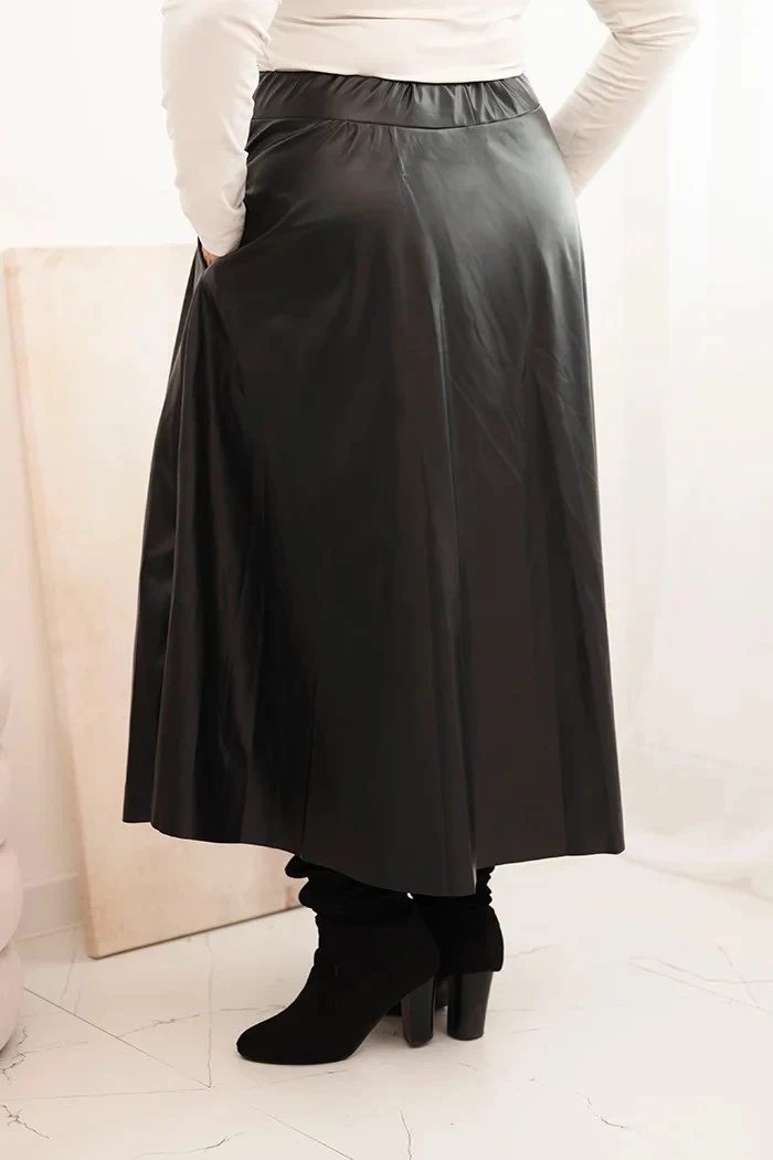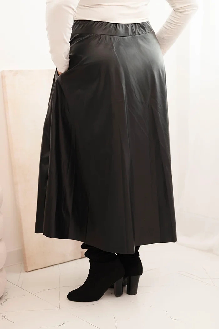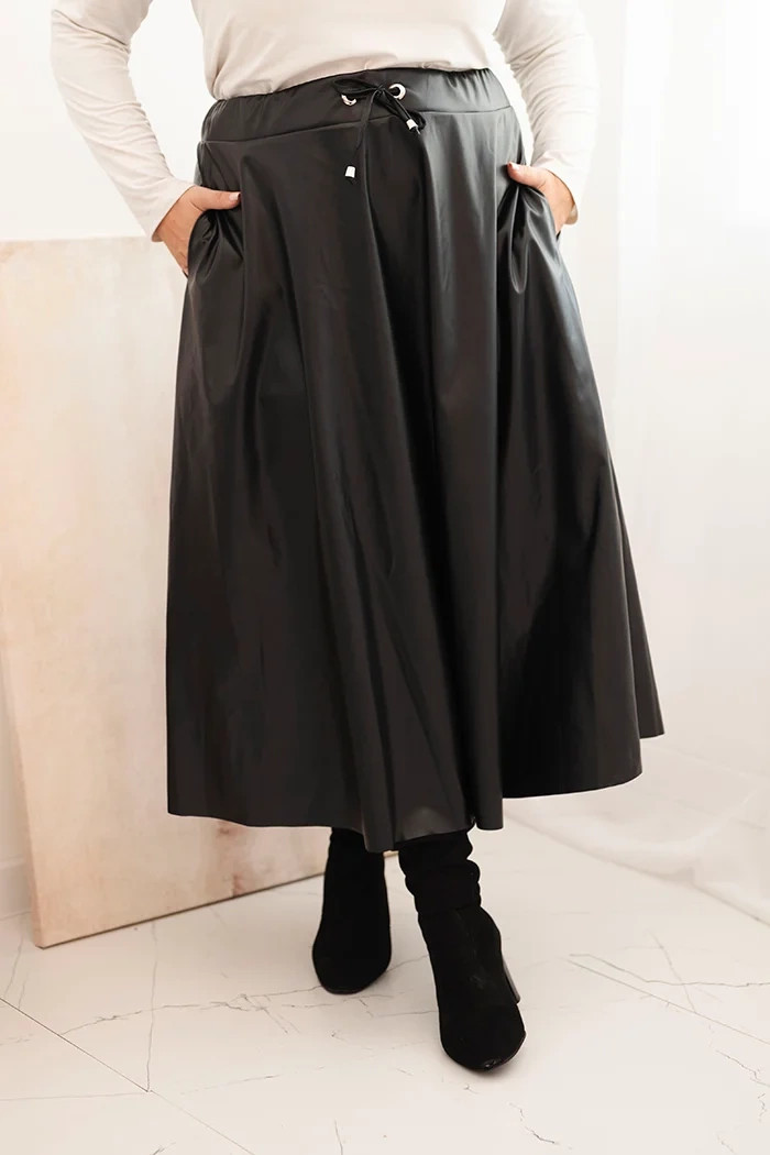 Dámská sukně Plus Size z ekologické kůže s gumou a šňůrkou v pase černá