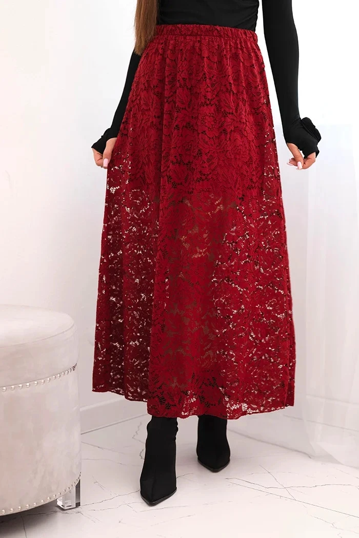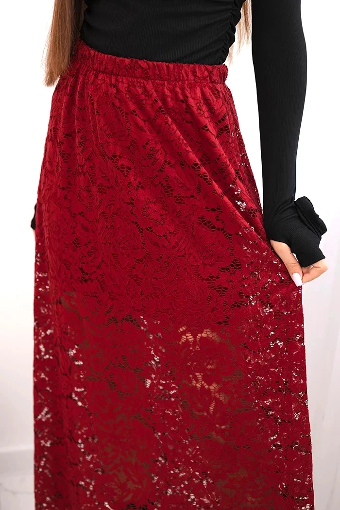 Dámská sukně s krajkou a podšívkou bordová