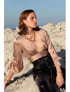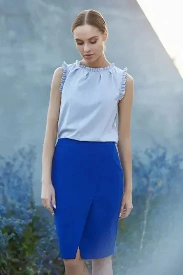Klasická, tužková sukně se zavinovací přední částí je základem šatníku.