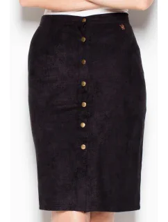 Módní tužková sukně v midi délce ze semiše. Charakteristickým znakem sukně je řada ozdobných knoflíků, které se táhnou po celé délce sukně.