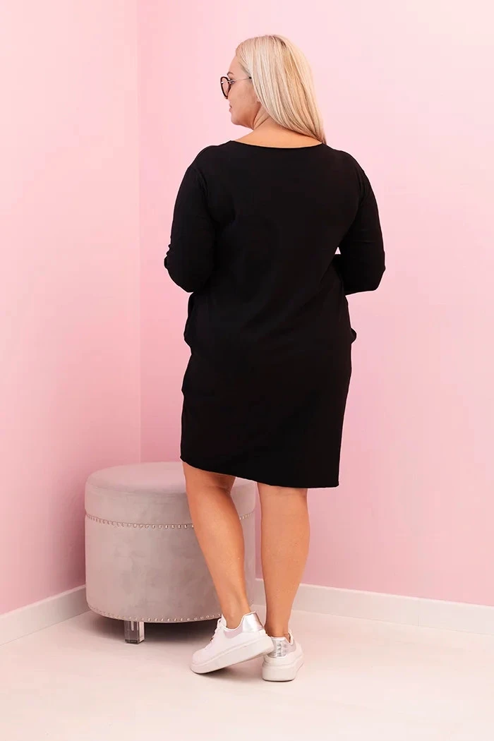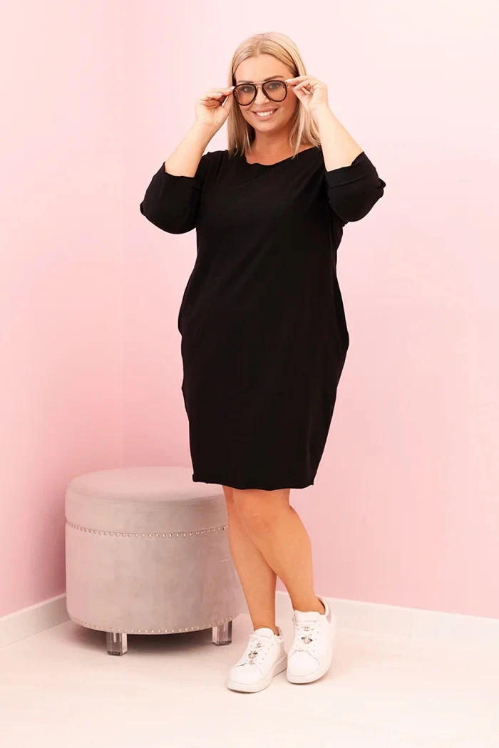 Dámská sukni Plus Size s bavlnou jednoduchého střihu a rukávem 3/4 černá
