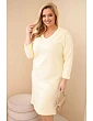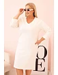 3. Dámská suknička Plus Size máslová s V výstřihem a rukávem bílá