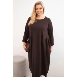 Dámská sukýnka Plus Size bavlněná s dlouhým rukávem a nařasením v pase hnědá