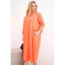 Dámská sukýnka Plus Size bavlněná s dlouhým rukávem a nařasením v pase meruňková