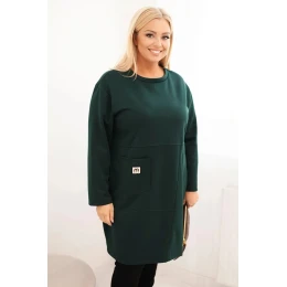 Dámská sukýnka Plus Size máslová s kapsou a 3/4 rukávem tmavě zelená