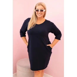 Dámská sukýnka Plus Size s bavlnou jednoduchého střihu a rukávem 3/4 modrá