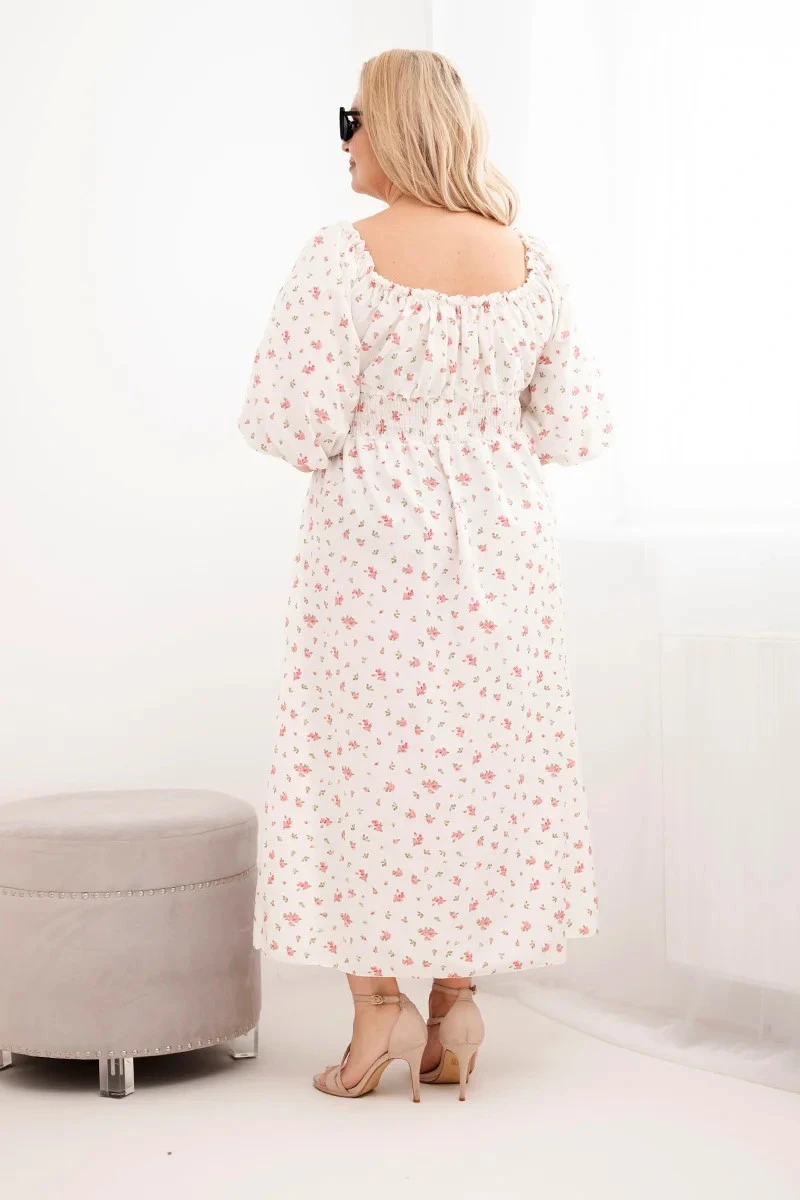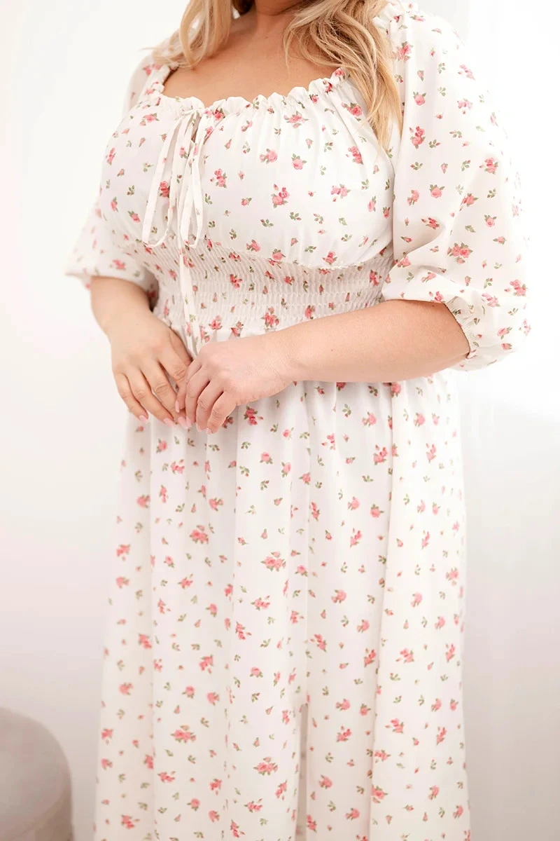 Dámská sukýnka Plus Size s dekoltem na tkaničky a elastickým pasem ecru