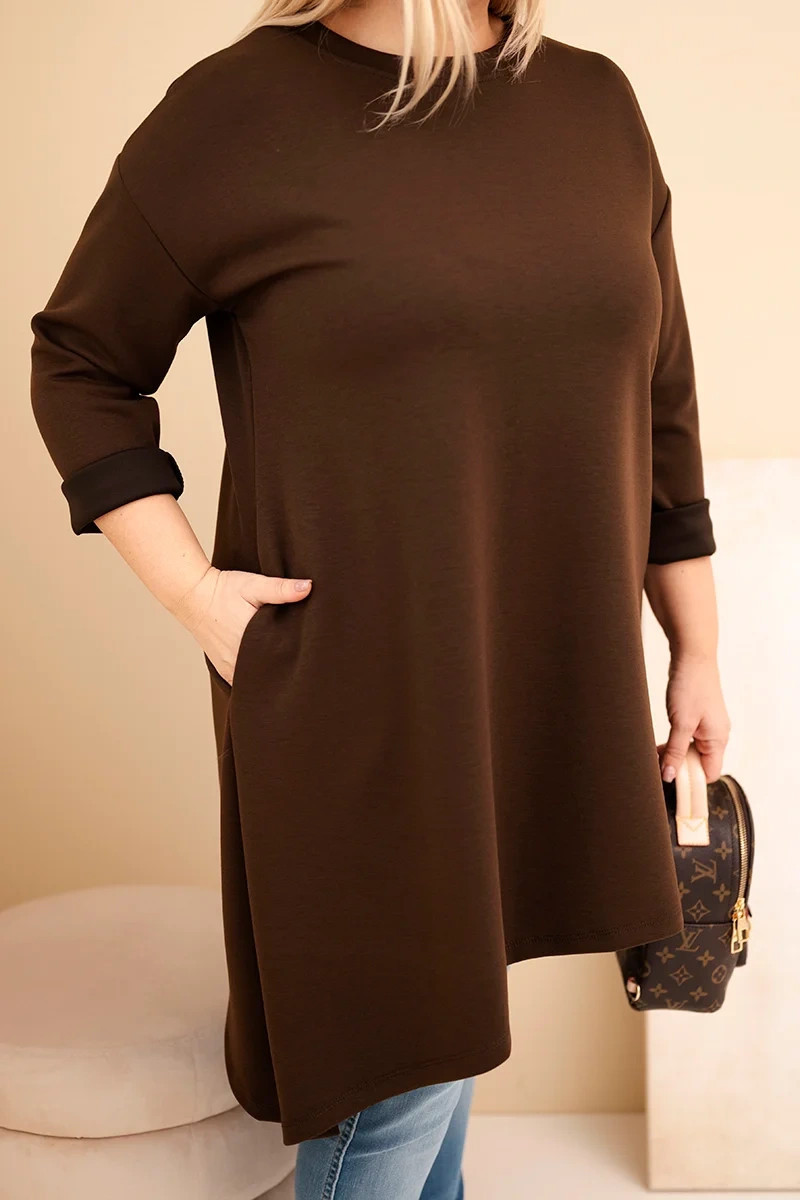 Přidání recenze k Dámská sukýnka Plus Size z viskózy s volným střihem a dlouhým rukávem hnědá
