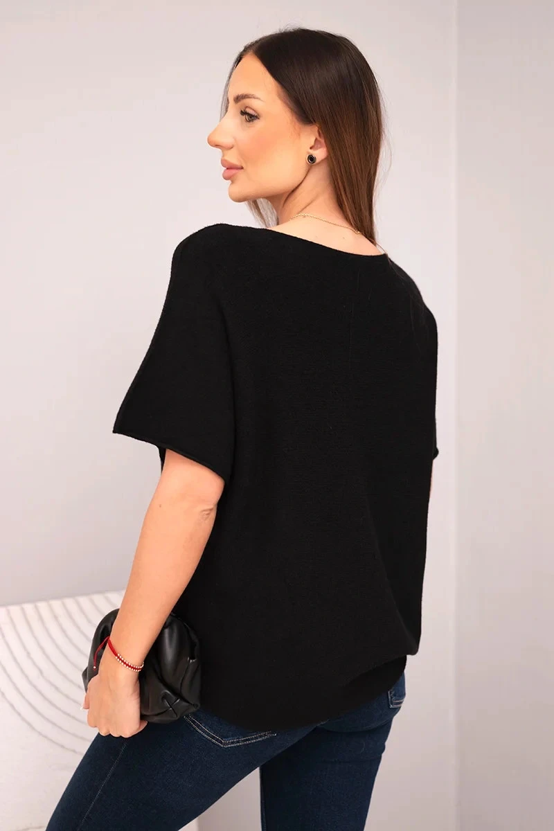 Dámská svetr s krátkým rukávem a výstřihem do V černá
