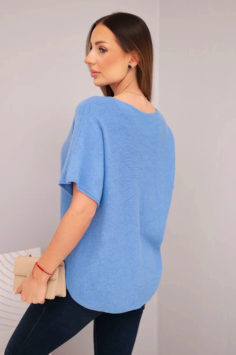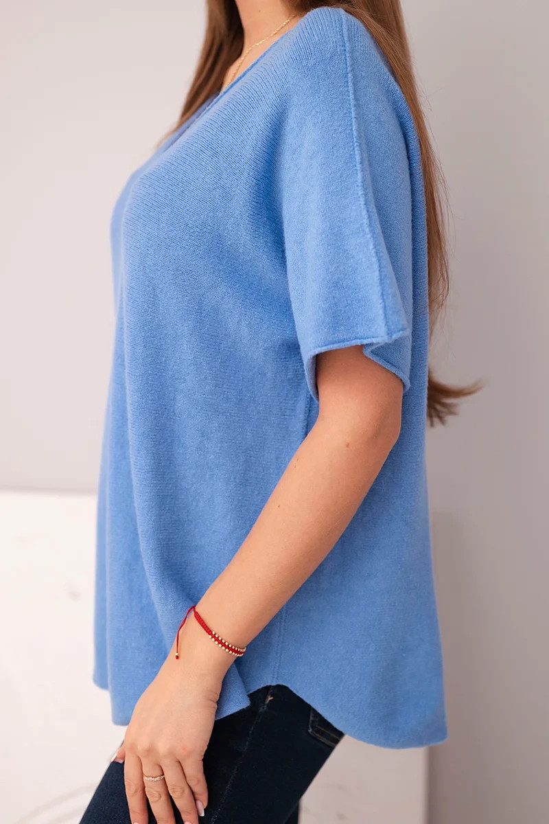 Dámská svetr s krátkým rukávem a výstřihem do V džínová
