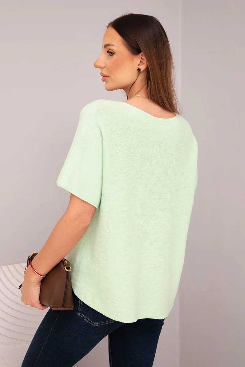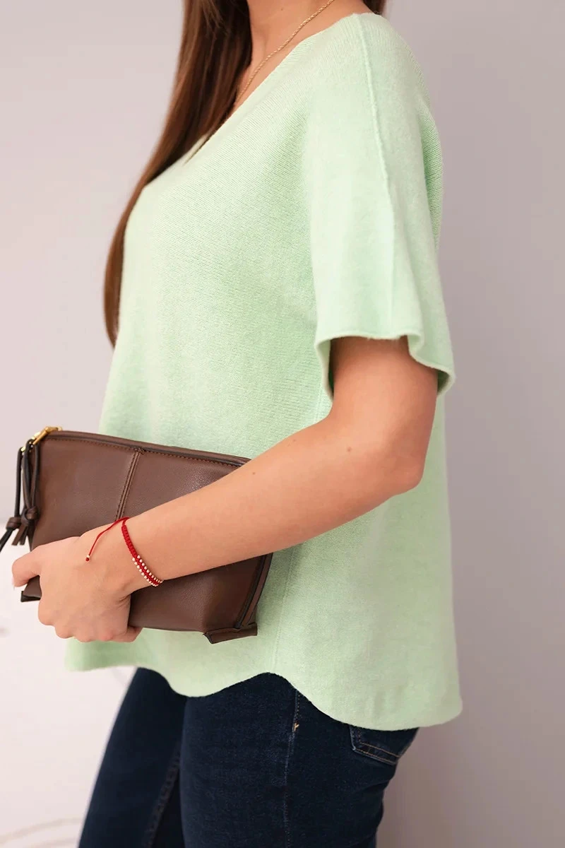Dámská svetr s krátkým rukávem a výstřihem do V mátová
