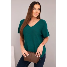 Dámská svetr s krátkým rukávem a výstřihem do V tmavě zelená