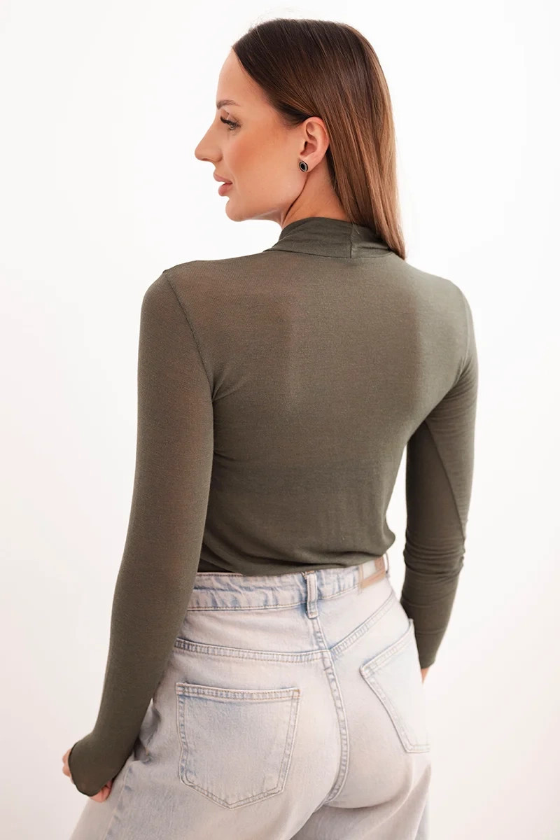 Dámská svetr z kašmíru s jemným rolákem a dlouhým rukávem, khaki