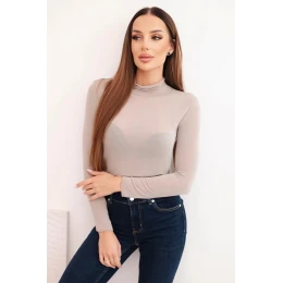 Dámská svetr z kašmíru s rolákem a dlouhým rukávem tmavě béžová