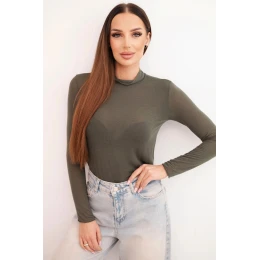 Dámská svetr z model 21777063 s jemným rolákem a dlouhým rukávem, khaki - K-Fashion