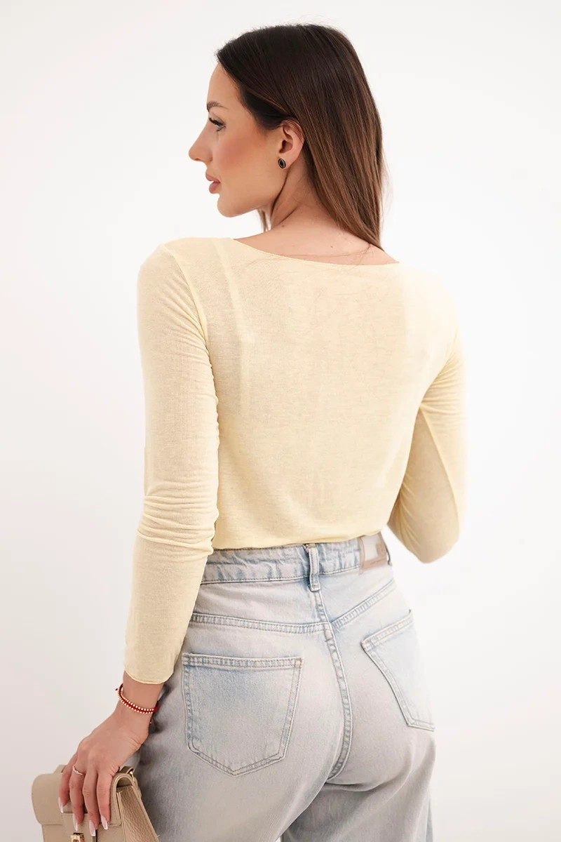 Dámská svetr z model 21937964 s kulatým výstřihem a dlouhým rukávem žlutá - K-Fashion