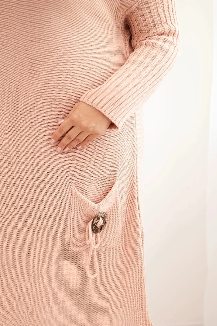 3. Dámská svetrková sukni Plus Size s mohairovým oversize s kapsou pudrově růžová