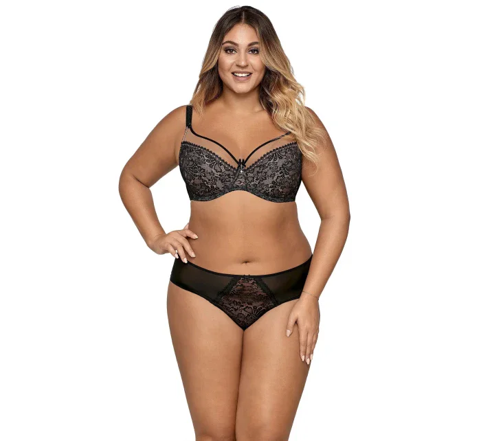 Žensky působící tanga 1396 Ava - mají vpředu vsadky z krajky a síťoviny - zadní díl je vyrobený z hladké látky - nohavičky jsou zakončené pružnou pogumovanou krajkou - tanga jsou ozdobená půvabnou saténovou mašličkou
