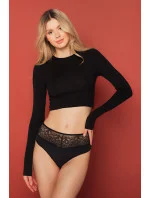 Dámská tanga 158 Babell - z velmi kvalitního a jemného mikrovlákna - černá barva - vyšší pas - horní část zdobená efektní krajkou - vnitřní část kalhotek je podšitá bavlněnou látkouMateriálové složení: 80% polyamid + 20% elastan