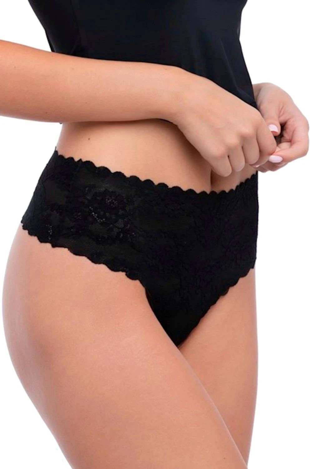 Dámská tanga Bellie black maxi JULIMEX - černá barva - z měkké elastické krajky - střižené laserem - bezešvé lemy - neviditelné pod oblečením
