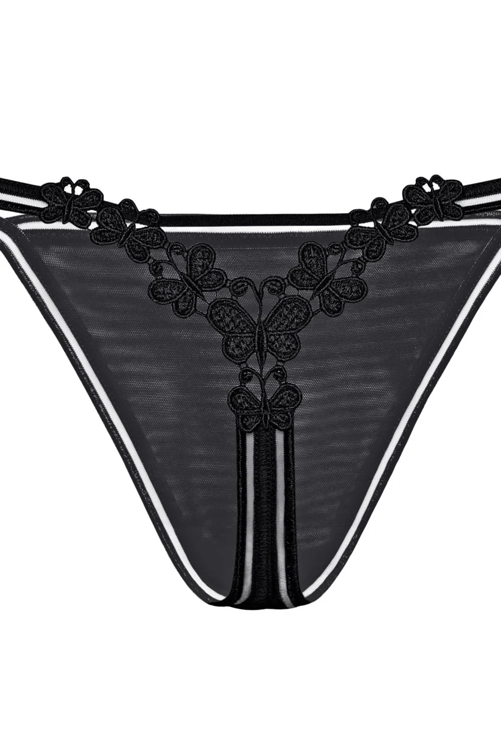 Nádherná sexy šňůrečková tanga Fiona Roza - přední trojúhelníkový díl z elastické síťoviny - pokračuje po bocích dozadu do šňůreček - zadní díl zdobený nádhernými motýlkovými aplikacemi