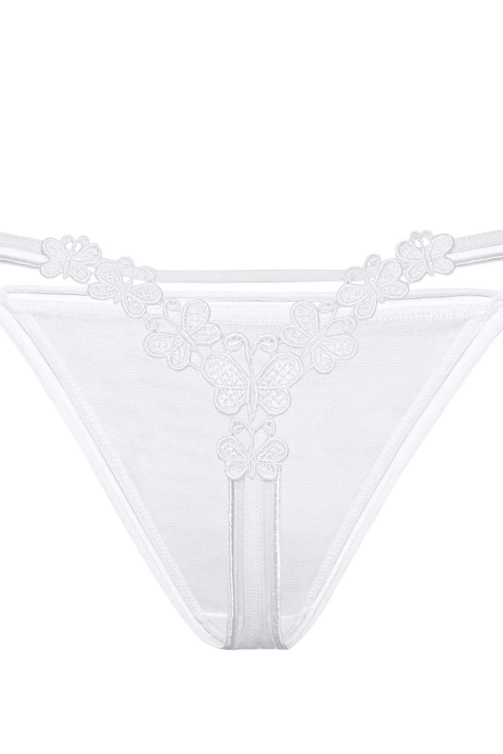 Nádherná sexy šňůrečková tanga Fiona Roza - přední trojúhelníkový díl z elastické síťoviny - pokračuje po bocích dozadu do šňůreček - zadní díl zdobený nádhernými motýlkovými aplikacemi