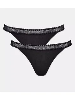 Dámská tanga GO Ribbed R Tanga C2P - BLACK - černé 0004 - SLOGGI