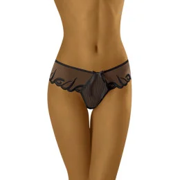 Luxusní krajková dámská tanga Wolbar Makumba - z průsvitného černého mikrovlákna - zdobeného vysoce kvalitní elastickou krajkou - velmi luxusní vzhledMateriálové složení: 83% microfibra + 17% elastan