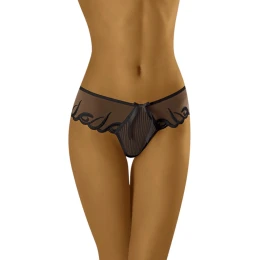 Luxusní krajková dámská tanga Wolbar Makumba - z průsvitného černého mikrovlákna - zdobeného vysoce kvalitní elastickou krajkou - velmi luxusní vzhled