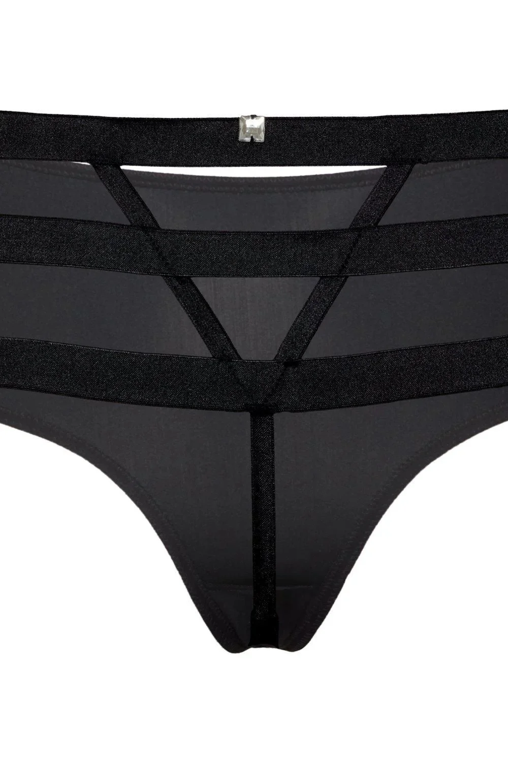 Dámská tanga Amorre black ROZA - černá barva - přední část z hladké lesklé tkaniny - zadní část z elastických pásků
